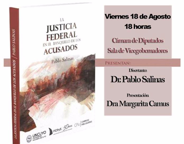 El abogado Pablo Salinas presentó en San Juan su libro “La Justicia Federal en el Banquillo de los Acusados”. Lo hizo junto a la jueza de Ejecución Penal de esa provincia, Margarita Camus, y al vicegobernador, Marcelo Lima. El sitio elegido para la presentación del libro fue la Sala de Vicegobernadores de la Cámara de Diputados. Entre los asistentes estuvo el ex gobernador sanjuanino José Luis Gioja, lo cual demuestra la envergadura de la obra. La jueza Camus no estuvo en la presentación por casualidad. La magistrada fue una presa política durante la dictadura. Estuvo cautiva en Devoto junto a la madre de Pablo Salinas. Este viernes, ella y el hijo de su compañera de largos días de flagelo, estuvieron unidos para presentar el libro. EL LIBRO: Recorre el camino realizado por la Justicia Federal en el banquillo de los acusados, desde los fundamentos y antecedentes históricos de la aplicación del régimen del terrorismo de Estado hasta su juzgamiento. Asimismo, profundiza sobre los fundamentos de la acusación del sector civil, que acompañó a la dictadura en Mendoza. Hace una descripción del plan represivo y la influencia francesa en el modelo de control social de la dictadura, basada en dos ejes centrales: la desaparición forzada y la tortura. El trabajo, además, incluye y contextualiza los hechos que van desde 1955 hasta el golpe de 1976 y la ejecución de crímenes contra la humanidad a partir de esa fecha. Aporta referencias concretas de grupos parapoliciales como la triple A, la ideología de la represión -conocida como Doctrina de la Seguridad Nacional- y el plan criminal desarrollado por la Junta Militar para atacar a la población civil. Describe los elementos centrales establecidos por el Derecho Penal Internacional, que configuran a los crímenes contra la Humanidad, con especial referencia al aparato de la Justicia Federal de Mendoza. Establece paralelismos entre la represión Argentina 1975-1983 y el caso de la Alemania nazi, especialmente aquellos vinculados al juicio de Nüremberg. Presenta el desarrollo durante los años recientes (2010 – 2017) del juicio a los ex-magistrados federales en la Causa F- 636, con las pruebas de las partes acusadoras consideradas fundamentales para acreditar la participación en el plan criminal. También, explica aspectos claves sobre la responsabilidad civil en casos concretos, tales como la desaparición forzada de Rubén Bravo, Marcelo Carrera y Adriana Bonoldi. Otros aportes del libro son la consideración de la responsabilidad penal de los magistrados, las teorías de la participación criminal aplicables y las calificaciones legales, por las que fueron acusados por la fiscalía de Mendoza, en especial, el accionar de las querellas. Fuente: Mendoza Post /