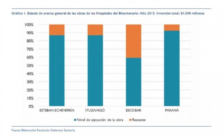 El informe precisa que “el valor total de las obras de los Hospitales de Paraná, Esteban Echeverría e Ituzaingó era de $1.445.702.623,31, de los cuales $1.214.384.495,04 ya habían sido abonados por el gobierno saliente (de Cristina Kirchner), restando abonar a la gestión de Cambiemos, tan solo $231.318.128,27”.