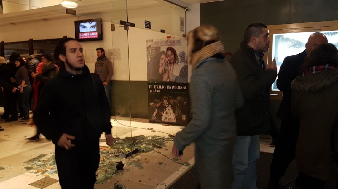 Un grupo de manifestantes irrumpió de forma violenta y destrozó las puertas del teatro ND Ateneo. Hubo un estallido, mostró en vivo C5N, que está en el lugar cubriendo el evento. Al menos dos jóvenes encapuchados generaron destrozos este miércoles por la noche en la puerta del teatro ND Ateneo, donde se presenta el documental sobre Santiago Maldonado, a un año de su desaparición. Pasadas las 20.06, cuando estaba en ciernes el estreno de la película sobre la desaparición y muerte de Maldonado, al menos dos personas arrojaron piedras y adoquines contra el vidrio de la entrada del ND Ateneo, ubicado en Paraguay y Suipacha. «Vinieron unos pibes y tiraron piedras», describió Juan Grabois, de la Confederación de Trabajadores de la Economía Popular (CTEP), a C5N. «Lo que ha existido es un grave delito, una agresión física. En ese caso cualquier ciudadano está habilitado por la ley para hacer cesar un delito. Estaban encapuchados y salieron corriendo», agregó Sergio Berni, ex secretario de Seguridad. [wpvideo 7gaOrGe8] Fuente: www.minutouno.com