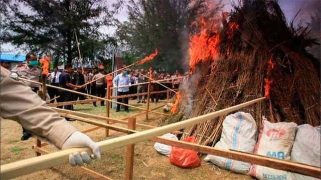 Indonesia: la policía quemó 3 toneladas de marihuana y drogó a todo el pueblo