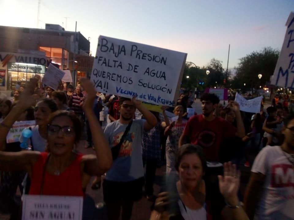En la tarde noche del jueves, las inmediaciones de la plaza «Villa Krause» se llenaron de vecinos indignados, que pacificamente y mediante elementos que producen ruidos marcharon por un servicio vital, el agua: «..en «Villa krause» todos los años es lo mismo. En verano no hay agua, apenas empiezan los calores disminuye y en diciembre, enero directamente no sale casi nada» afirmo uno de las vecinas presentes
