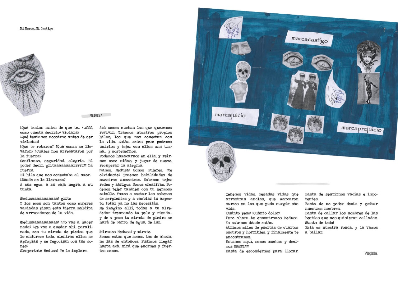 San Juan, 17 de noviembre del 2020 Por Guadalupe Lloveras El 19 de noviembre, es el Día Mundial de la Prevención del Abuso en las Infancias. El abuso sexual o maltrato en las infancias se define como cualquier acción u omisión, no accidental, por parte de padres, madres o personas en el contexto de responsabilidad, confianza y poder, hacia niños y niñas, que les ocasionen daños a la salud y el desarrollo tanto físico como psicológico.Algunos tipos son maltrato físico, psicológico, emocional, abuso sexual, explotación comercial, desatención y negligencia. Las estadísticas realizadas en Argentina en el año 2016 por UNICEF demuestran que en el 53% de los casos estos abusos suceden en el hogar de la víctima y en el 75% el agresor es un familiar. Hoy en día se considera clave la implementación de la Ley de Educación Sexual Inicial (ESI) que ayuda a prevenir y visibilizar estas cuestiones desde las aulas primarias, acompañando y promoviendo infancias sanas y libres. El próximo 19 de noviembre en la provincia de San Juan, se llevará a cabo la publicación del libro «Diario Cicatriz», una experiencia artística terapéutica que surge gracias al trabajo conjunto del Proyecto Cicatriz San Juan. Conversamos con Carla Graffigna , filósofa, cofundadora del proyecto y tallerista de escritura terapéutica desde el año 2017. Carla nos comentó como surge la iniciativa: «Como sobreviviente de violencia sexual, a partir de toda la movida que se armó con la denuncia de Thelma Fardin, me di cuenta que hacía falta un espacio para canalizar el impacto y las sensaciones que quedan después de vivir una experiencia así. Lo contás, a veces lo revivís, te duele, y ¿Después qué? Te quedas como estancada en creencias, patrones de comportamiento y emociones tóxicas […] Entonces busqué a Dolores Córdoba y ella me conectó con Sandra Vega, psicóloga especialista en este tema que trabaja en el área de psiquiatría del Hospital Rawson. Buscamos la forma de institucionalizar la iniciativa y nos presentamos en la convocatoria 2019 de proyectos de extensión de la UNSJ. Nuestra propuesta fue aprobada sin financiamiento. Así surgió Proyecto Cicatriz San Juan, con la misión de dar talleres y charlas de visibilización y sensibilización sobre la problemática del abuso sexual en las infancias y violencia sexual». Carla nos cuenta que desde aquel momento, comenzaron a trabajar con talleres para sobrevivientes de abuso y violencia sexual, enfocados fundamentalmente en recuperar la voz y la conexión con el cuerpo, desde la perspectiva del arte-terapia. «En el 2019 hicimos un taller de improvisación vocal con Patricia Savastano y el de escritura terapéutica. Este último empezó en agosto y terminó en diciembre. El único requisito para participar es haber trabajado la experiencia en terapia, o estar en ese proceso, para evitar desbordes y aprovechar la experiencia» y añade «En el taller de escritura participaron 13 mujeres de diferentes edades, experiencias y ámbitos. Nos reuníamos cada 15 días en el área de psiquiatría del hospital. Trabajábamos con lecturas que debatíamos en cada encuentro. A cada una se le entregó un cuaderno, y se le pidió que registrara sensaciones, ideas, sueños, etc. Que se le fueran ocurriendo en todo este proceso. Ese cuaderno se convirtió en el diario intimo de cada una, un espacio sagrado para reconectar con su intimidad creativamente». Carla, comentó que durante este año, a raíz de la pandemia por la enfermedad del Coronavirus, las reuniones presenciales se vieron imposibilitadas, teniendo que modificar toda la planificación prevista para el año 2020. Ahora había un nuevo inconveniente que era ¿Cómo acompañar en la distancia? «Se nos ocurrió hacer este diario, para acercar este recurso artístico terapéutico a quien lo necesite. Es una obra colectiva, las integrantes del taller que siguieron este año (via whatsapp) sumaron textos que escribieron durante este tiempo. Su realización fue posible gracias a la convocatoria para artistas y gestores culturales realizada por el Ministerio de Turismo y Cultura de la provincia» comentó Carla Graffigna a El Cimbronazo. El libro se llama «Diario Cicatriz», es un cuaderno de collages artístico que busca cumplir la función de diario intimo. Consta de tres partes y un anexo. Las integrantes de dicho taller y motor de este proyecto nos cuentan que «Las tres partes se corresponden progresivamente con nuestro proceso artístico terapéutico. La primera parte se llama Mi Marca, Mi Castigo, esta centrada en el impacto de cada experiencia traumática desde una perspectiva individual, y trabajamos con el mito de Medusa. En la segunda parte, Nuestra Marca, Nuestra Cicatriz abordamos la experiencia de la violación y abuso desde una perspectiva colectiva, enmarcándola como la consecuencia de vivir en una sociedad patriarcal y en una cultura de la violación que promueve y justifica estos actos. En la tercera parte, ¿Una palabra…lo dice todo? indagamos en cómo impacta en nosotras sentirnos victimas o sobrevivientes, y como «sobrevivir» no alcanza. Buscamos una palabra que resuene mas con nuestra búsqueda de sanación personal y colectiva. El anexo tiene ejercicios y técnicas de escritura terapéutica para que sirvan como disparadores creativos para que cada persona los use como herramientas de expresión y reencuentro consigo misma/o/e». La presentación será el próximo jueves 19 de noviembre a las 21 hs. Este lanzamiento se dará de manera virtual. Para finalizar Carla nos cuenta porque eligieron este día: «Elegimos este día para presentarlo porque es una excelente oportunidad para visibilizar esta problemática que afecta principalmente a mujeres CIS, colectivo LGBTQI, pero también a los hombres. El impacto físico, emocional y mental de una experiencia de abuso o violación es inmenso y afecta a la persona durante años. Hay muchas personas que no hablan, que sufren en 