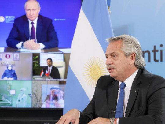 «El pueblo y el gobierno argentino le estamos inmensamente agradecidos”, le dijo Fernández a su par de Rusia, y añadió: “Decimos en Argentina que los amigos se conocen en los momentos difíciles, y cuando pasamos un momento difícil, el gobierno de Rusia estuvo al lado de los argentinos ayudándonos a conseguir las vacunas que el mundo nos negaba”.