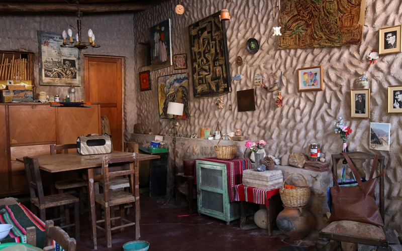 Gracias a Lina Mamani (encargada actualmente de la Biblioteca y Archivo Rodolfo Kusch) pude visitar la casa. Todas las salas habían madurado a una estética característica, pero estaban pausadas a la manera que solo sabe la falta de habitantes. Debía remontarme con la imaginación a aquel tiempo en que Kusch la recorría humanamente, mascando alguna idea como mascan coca los maimareños, ocupando el espacio, atrayendo “cosas” por el impulso de vivir allí, colgando el dibujito.