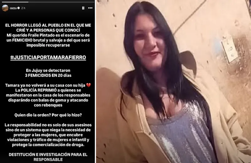Con la fuerza de su palabra y el dolor de sus raíces, la cantante jujeña Cazzu rompió el silencio ante el femicidio de Tamara Fierro, una joven madre de 29 años asesinada brutalmente en Fraile Pintado, su pueblo natal.