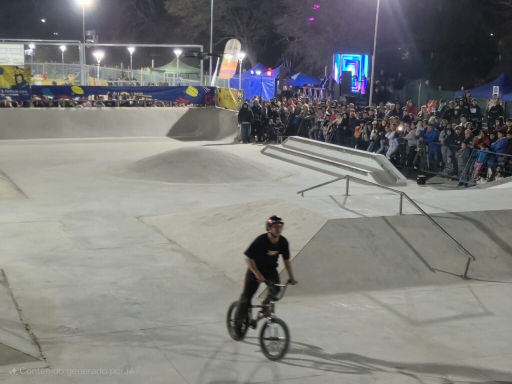 A las 18:30 Hs se procedió con el acto protocolar de inauguración del espacio destinado a paradero, polideportivo y Skatepark. Acto seguido se presentaron las niñas de Patinaje Artístico del departamento San Martín y la jornada cerró con la exhibición de raiders de BMX, rollers, skatebording, Quad-Skate, DJ y Host.