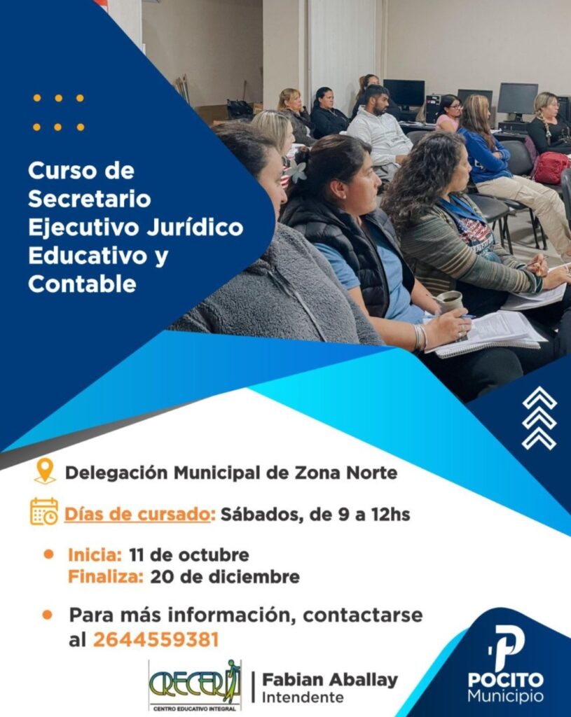 El Municipio de Pocito, junto con el Centro Educativo Integral Crecer, dictará dos importantes cursos con el objetivo de capacitar a los pocitanos y fortalecer las bases de un departamento con más empleo, progreso y bienestar.