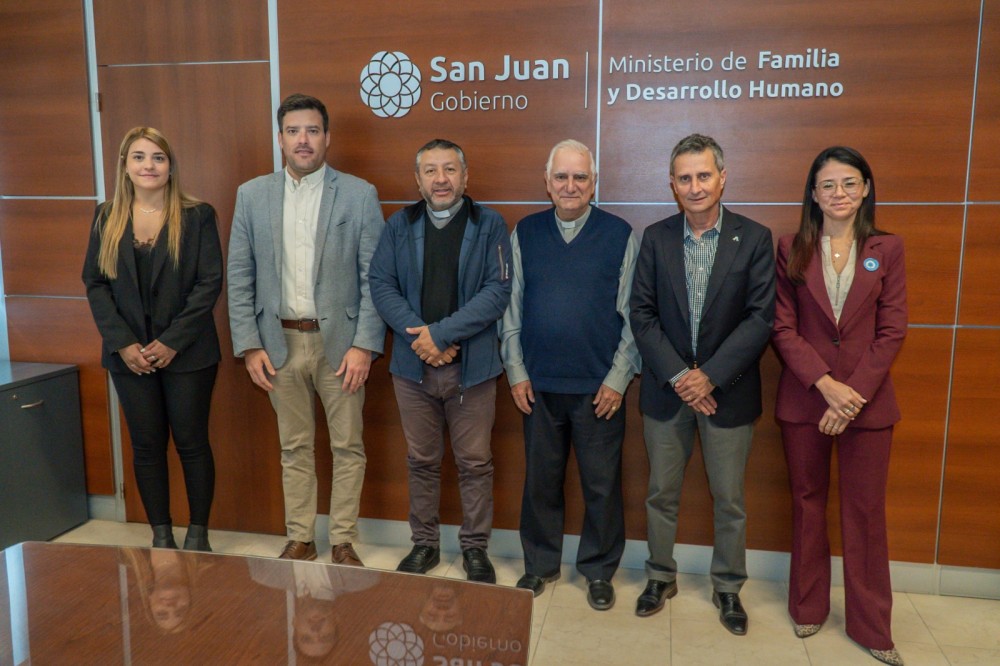 Las autoridades del Ministerio de Familia y Desarrollo Humano recibieron al arzobispo de Cuyo y el obispo auxiliar para fijar una agenda de trabajo compartida. Este martes 28 de octubre, el ministro de Familia y Desarrollo Humano, Carlos Platero, recibió a la cúpula del Arzobispado de San Juan de Cuyo, para acordar las acciones conjuntas a seguir con el propósito de prevenir y abordar los consumos problemáticos. Esta iniciativa es parte de la propuesta planteada en el Plan Provincial Estratégico de los Consumos Problemáticos 2023-2027, que presentó recientemente el gobernador Marcelo Orrego y que abarca a todos los ministerios y dependencias de gobierno, además de las instituciones fundamentales de la provincia, entre otros los cultos que hacen a la vida espiritual y religiosa de San Juan, para confluir en un enfoque multidisciplinario y multisectorial. El encuentro en el que estuvieron presentes monseñor Jorge Eduardo Lozano y el obispo auxiliar y vicario general Mario Robles, además del secretario de Promoción Social, Ramiro Pavone, la directora de Prevención y Asistencia de los Consumos Problemáticos, Daniela Merlo; y la directora de Género, Valeria Díaz; resultó por demás auspicioso para el objetivo planteado. De hecho, se definió la realización, en el mes de noviembre próximo, de una capacitación para los referentes de organismos de la Iglesia Católica vinculados a los más jóvenes, tales como Cáritas, grupos scouts y los catequistas y docentes que hacen la preparación para la confirmación, entre otros. Esta capacitación estará centrada en cómo detectar un caso sospecho y cómo actuar para asistir a quien lo necesite, pero también puntualizará en la prevención y en protocolos de acción ante consumos problemáticos. Será el puntapié inicial no sólo de un contacto permanente con las dependencias ministeriales que abordan esta problemática, sino que además servirá de base para un futuro encuentro provincial de jóvenes, previsto para el 2026. A su vez, se resolvió convocar a una mesa común a representantes de todas las religiones para trabajar específicamente en el abordaje de los consumos problemáticos. La Iglesia Católica no es el único culto con el que se avanzado en los planteos referidos a consumos problemáticos. En el mes de septiembre pasado, junto a la Pastoral Evangélica de San Juan se llevó adelante un encuentro en el que participaron 170 jóvenes, de todos los departamentos de la provincia, para compartir reflexiones, aprendizajes e inquietudes respecto de adicciones y consumos problemáticos. A su vez se informó de las dependencias y espacios donde se puede recurrir en busca de asistencia y contención.