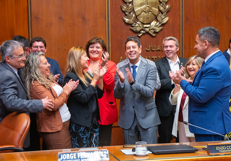 Durante la Decimotercera Sesión del Período Ordinario, la Cámara de Diputados de San Juan aprobó la renuncia presentada por el diputado Carlos Jaime Quiroga, quien asumirá como diputado nacional el próximo 10 de diciembre de 2025. Tras la lectura de su carta de renuncia, realizada por el secretario Legislativo Gustavo Velert, diversos legisladores tomaron la palabra para despedirlo. Los diputados Mario Herrero, Emilio Escudero, Fernando Patinella, Federico Rizo, Franco Aranda, Juan de la Cruz Córdoba, Enzo Cornejo, Alejandra Leonardo, Marta Gramajo, Fernanda Paredes, Miguel Vega y Marisa López destacaron su compromiso, su vocación de servicio y el aporte realizado durante su labor legislativa. Finalmente, el diputado Carlos Jaime Quiroga brindó un discurso de despedida en el que expresó su profundo agradecimiento a las diputadas y diputados, a las autoridades de Cámara, al personal legislativo y a sus equipos de trabajo, subrayando el valor del esfuerzo compartido a lo largo de su gestión. La emotiva despedida del diputado Quiroga marcó uno de los momentos más significativos de la sesión. Cabe señalar que la sesión fue conducida de forma alternada por el vicepresidente primero, diputado Enzo Cornejo y la vicepresidente segunda, diputada Marisa López. Otros temas aprobados A continuación se desarrollan los diferentes asuntos aprobados en la Decimotercera Sesión: Ley que regula la actividad de los museos Con tratamiento sobre tablas, la Legislatura sancionó con fuerza de Ley el proyecto que establece el marco para la creación, gestión, administración, conservación, investigación, difusión y promoción de los museos de la provincia de San Juan, con el propósito de fortalecer la protección y preservación del acervo histórico y cultural. La diputada Cristina López, autora de la iniciativa, fundamentó el proyecto y destacó que la Ley tiene como objetivos: a) Impulsar el desarrollo de una política provincial en materia de museos.b) Promover la coordinación y cooperación interinstitucional entre los museos.c) Contribuir a la profesionalización del campo museológico.d) Regular estándares técnicos de gestión. Asimismo, la diputada Alejandra Leonardo realizó aportes durante el tratamiento y subrayó el trabajo de la Dirección de Patrimonio Cultural. Cabe señalar que el proyecto contaba con tratamiento de preferencia y, al no haber obtenido despacho, el cuerpo legislativo se constituyó en comisión para avanzar en su análisis, oportunidad en la que se consensuaron las modificaciones correspondientes y se logró su aprobación por unanimidad. Convenio con la Agencia Calidad San Juan Sociedad Mixta Tras los argumentos brindados por el diputado Juan de la Cruz Córdoba, la Legislatura ratificó el Convenio Marco de Asistencia y Cooperación entre la Secretaría General de la Gobernación y la Agencia Calidad San Juan Sociedad de Economía Mixta. La finalidad de este acuerdo de cooperación y vinculación interinstitucional, consiste en llevar a cabo acciones coordinadas de asistencia técnica y colaboración mutua para desarrollar en el ámbito de sus competencias los objetivos que le son propios. Cabe señalar que este asunto obtuvo 16 votos positivos y 12 votos negativos. Convenio con la Fundación Proniño San Juan CONIN Luego, la diputada Marcela Quiroga fundamentó este punto del orden del día y la Legislatura resolvió aprobar el Convenio celebrado entre Ministerio de Familia y Desarrollo Humano y la Fundación Proniño San Juan-Centro CONIN. El objeto de este acuerdo consiste en fomentar y consolidar políticas y estrategias destinadas a la prevención y erradicación del hambre infantil, en concordancia con lo previsto en la Ley N°1606-S y el Programa Mil Días, orientados a garantizar la adecuada alimentación y el cuidado integral de la salud durante los primeros años de vida. Distinción Diploma de Honor Republicano Más tarde, los diputados pusieron a consideración las comunicaciones particulares presentadas por la Facultad de Ciencias Sociales de la Universidad Nacional de San Juan, y por la Universidad Católica de Cuyo, mediante las cuales se eleva la nómina de postulantes a la distinción “Diploma de Honor Republicano Dr. Eduardo Luis Leonardelli- Dr. Pablo Ramella, Grandes Defensores de la Constitución y de las Instituciones”. De esta manera resolvieron aprobar las resoluciones para otorgar las distinciones a: Prórroga del Período Ordinario Por otra parte, el cuerpo Legislativo aprobó la Resolución mediante la cual se prorroga el periodo ordinario 2025 de sesiones hasta el día 30 de diciembre de 2025. Designación de representantes del Jurado de Enjuiciamiento Conforme al artículo 230 de la Constitución Provincial y a la Ley N.° 663-E, la Cámara de Diputados llevó a cabo la designación de los cuatro representantes para integrar el Jurado de Enjuiciamiento. En este marco, el diputado Juan de la Cruz Córdoba propuso a la diputada Marcela Quiroga como representante titular y a la diputada Alejandra Leonardo como suplente. Por su parte, el diputado Juan Carlos Quiroga Moyano postuló al diputado Pedro Albagli como titular y a Mario Herrero como suplente. Ambas mociones fueron aprobadas por la Legislatura Resoluciones Asimismo, durante la sesión declararon de interés:
