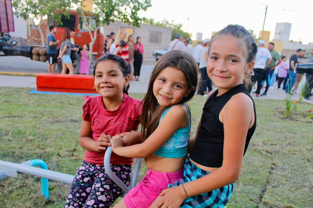 La intendenta Municipal de la Ciudad de Chimbas, Daniela Rodríguez, junto a vecinos del Barrio Ara San Juan, dejaron inaugurada la nueva plaza del lugar.