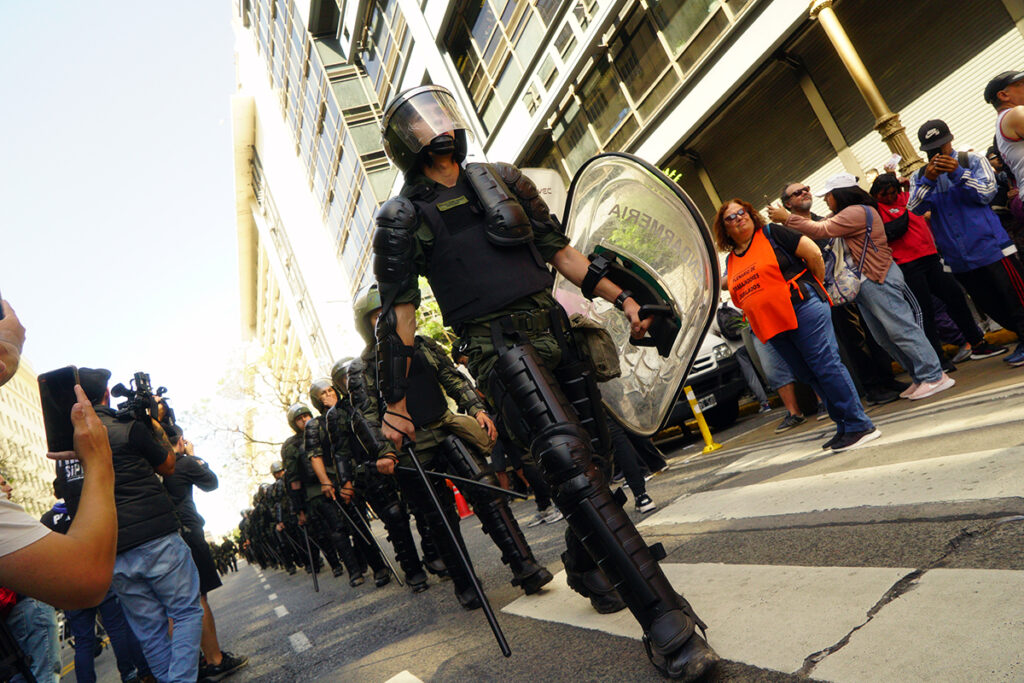 Este protocolo, puesto en marcha en diciembre de 2023 por la entonces ministra de Seguridad nacional Patricia Bullrich, establece que cualquier manifestación que interrumpa el tránsito constituye un delito en flagrancia, lo que habilita la actuación de las fuerzas de seguridad para desalojar o dispersar la protesta.