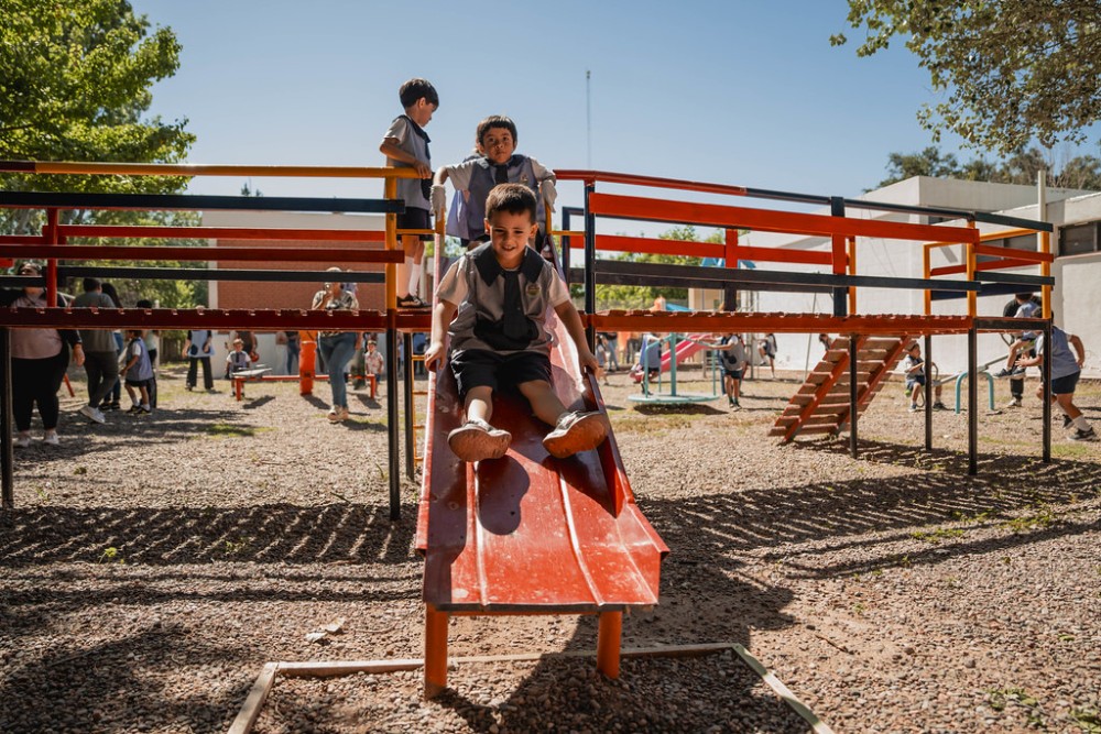 Colocaron toboganes, maromas, calesitas y mangrullos. La compra de la mayoría de los juegos y toda la instalación se realizó con fondos provinciales. Durante el 2025 se concluyó con la instalación de patios de juegos en 133 Escuelas de Nivel Inicial (ENI) favoreciendo a más de 5000 niños que disfrutaron de un espacio fundamental para su desarrollo. “El juego es el lenguaje principal de la infancia, permitiendo a los niños expresar su mundo simbólico, procesar emociones y desarrollar habilidades sociales y cognitivas cruciales, y la escuela, a través de estos espacios, promueve el juego como un derecho y un valioso contenido cultural, para fomentar el desarrollo integral, la creatividad y la exploración del mundo real e imaginario. Es muy importante que hayamos podido instalar estos juegos en escuelas que lo necesitaban”, expresó la ministra de Educación, Silvia Fuentes. El patio de juegos incluye tobogán, maroma, calesita y mangrullo grande o chico. Los elementos se fueron instalando de acuerdo a lo que cada ENI requería, por lo que en algunas se instaló el patio completo y en otras se colocaron los juegos que faltaban. Además se pudo llegar a varios puntos de la provincia beneficiando a ENIs de distintos departamentos. Con la adquisición de estos elementos se pudo dar respuesta a muchas Salas de Nivel Inicial, teniendo en cuenta que no se trata solo de un espacio físico donde los niños se mueven con mayor libertad, sino un entorno pedagógico vital donde el juego, promovido y observado por el docente, es el vehículo principal para el desarrollo integral de los niños.