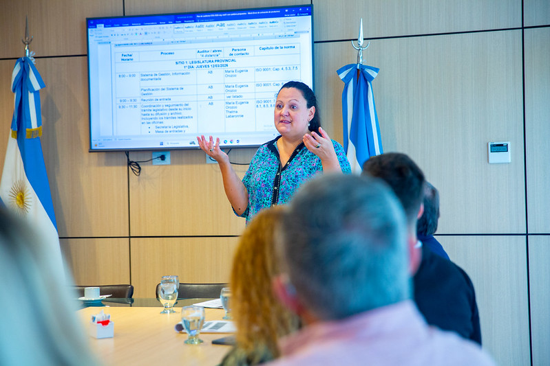 La auditora Anabel Barú fue recibida en la sala de reuniones del segundo piso del edificio Anexo de la Legislatura. Del encuentro participaron el secretario Legislativo, Gustavo Velert, y el secretario Administrativo, Jorge Fernández. También estuvieron presentes la responsable de Calidad, María Eugenia Orozco; la directora de Procedimientos y Servicios Generales, Daniela Sánchez; la jefa de Personal, Silvina Lazzaro; la directora de Despacho Administrativo, María Alejandra Calvo; la asesora de Presidencia, Karen Patinella, junto a otros jefes de distintas áreas del edificio Legislativo.
