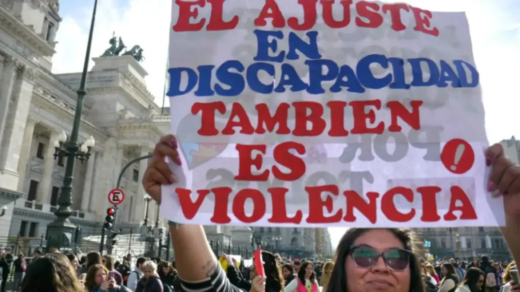 Familiares y organizaciones que integran el Foro Permanente para la Promoción y la Defensa de los Derechos de las Personas con Discapacidad se movilizaron este martes al Ministerio de Economía para exigir al gobierno de Javier Milei los fondos del programa Incluir Salud y la implementación de la Ley de Emergencia en el sector.