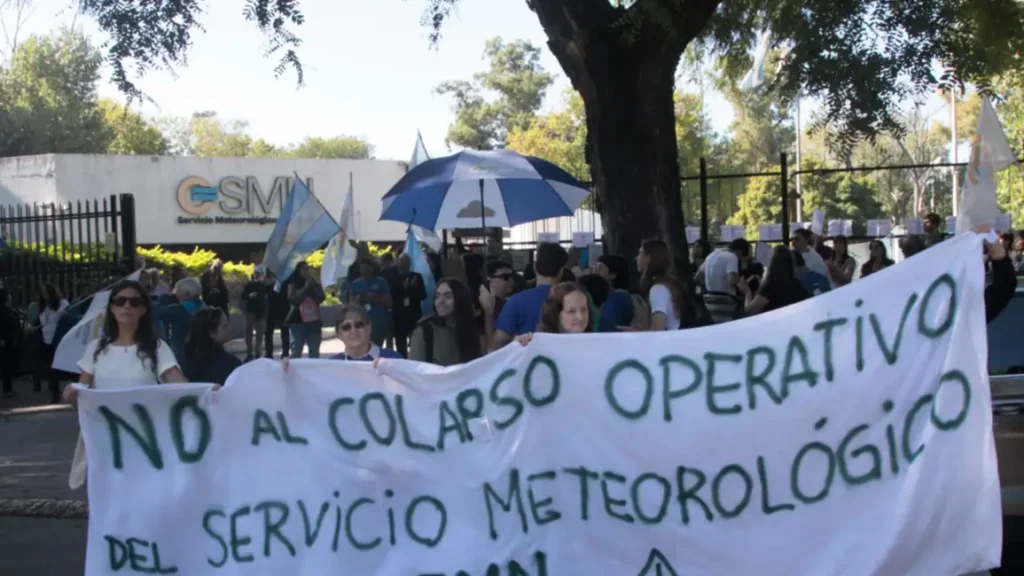 Los trabajadores, que ya venían realizando movilizaciones frente a la sede central en Palermo, advirtieron que la reducción de la planta técnica pone en riesgo la continuidad de servicios esenciales, desde la navegación aérea hasta la prevención de desastres naturales.