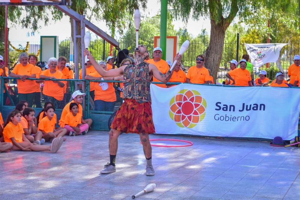 Ofrecen talleres y actividades que fomentan la imaginación en los niños y personas mayores. Las Colonias de Verano, organizadas por el Ministerio de Familia y Desarrollo Humano, son una de las mayores acciones de inclusión a través del esparcimiento y la contención que lleva adelante el Gobierno provincial. Tal es el caso de los departamentos de Angaco y San Martín donde autoridades de la cartera social llevaron adelante una visita para compartir un grato momento con quienes asisten diariamente a los centros establecidos para el esparcimiento de niños y personas mayores. En ese sentido, el Ministro de Familia y Desarrollo Humano, Carlos Platero, junto con las autoridades municipales visitaron ambos departamentos y disfrutaron de las propuestas de los artistas itinerantes. “Felicitamos a los organizadores, tienen un lugar muy bonito, muy bien preparado, con buena arboleda y pileta, todo para disfrutarlo”, destacó Platero. Los artistas itinerantes en colonias de vacaciones desempeñan un papel fundamental en la promoción de la creatividad, la cultura y el entretenimiento en estos espacios. A continuación, te presento algunas notas sobre su importancia. Lucía Moreno es artista de circo, forma parte de la compañía de circo Flama. “Junto con compañeros de otros equipos, estamos viniendo a las colonias a hacer actividades y un show para que conozcan el circo. Tahua, Gonza, Flor, Palito, Lula y Luchi son malabaristas y acróbatas que comparten su arte. Por otro lado, Carina Fernández junto a su compañera Tatiana, llegaron a pintar las caritas con maquillaje artístico a los pequeños y adultos mayores. Uno de los coordinadores de la colonia de Angaco cuenta que allí se practica voley, handball, fútbol, hockey, actividades culturales con las profes de plástica danza y gimnasia artística pero la preferida de todos es la pileta. Estamos enseñando natación con cuatro profesores en la pileta, más los guardavidas. Y con las personas mayores también hacemos muchas actividades al aire libre, la que más les gusta es el trekking. También les gusta mucho hacer manualidades con las profes de plástica y jugar al sapo, y al tejo, donde se divierten mucho y también se distienden. No hay edad para divertirse En la colonia de Angaco, Leonor Vargas tiene 81 años, es la segunda vez que participa de la colonia y cuenta que le encanta. Cría animales y confiesa que han escrito un libro sobre su vida.Leonor fue a la escuela y a la vez se ha dado tiempo para ayudar en la crianza de sus 16 hermanos y sus 10 hijos. Fue partera, hace pan y quesillo y confiesa que lo único que no sabe hacer es prender el lavarropas y por eso lava todo a mano. En la colonia le gusta diseñar diferentes elementos como imanes y veleros con materiales reciclados. Por su parte, la protagonista más longeva de la colonia de San Martín es María Ester Tejada. Tiene 90 años cuenta que es el primer año que asiste, tiene 5 hijos y cuenta que hace de todo en la colonia, reciclado, en todos los juegos. También le encanta hacer gimnasia y bailar folclore.
