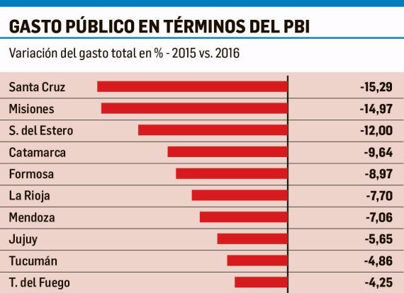 En la previa de la reunión de gobernadores del miércoles para frenar la probable pérdida de recursos por el reclamo de la bonaerense María Eugenia Vidal para eliminar el techo del Fondo del Conurbano, un informe reveló que de las diez provincias que lograron ajustar el gasto público en mayor medida, ocho son gobernadas por el peronismo en sus distintas variantes. El Instituto Argentino de Análisis Fiscal (IARAF) realizó un trabajo donde, tras afirmar que en 2016 el peso del gasto se mantuvo prácticamente constante a nivel provincial, puso a Santa Cruz -administrada por Alicia Kirchner- como el distrito que más ajustó respecto a 2015, un 15,29%. Una necesidad de los patagónicos ante el cambio de signo en la Casa Rosada, que obligó a la gestión santacruceña a ser más eficientes en el manejo de las cuentas. Este año, además, la provincia selló un acuerdo con Nación de control de gastos para llegar al equilibrio fiscal en 2019. A Santa Cruz le siguen Misiones (14,97%), Santiago del Estero (12%), Catamarca (9,64%), Formosa (8,97) y La Rioja (7,7%). Los mandatarios de todos estos distritos son parte de la liga de gobernadores peronistas que despliega cumbres -la próxima será el miércoles (ver aparte)- para diagramar una estrategia común para oponerse en la Corte a la demanda de la macrista Vidal, quien pidió volar el tope al Fondo del Conurbano. La catamarqueña Lucía Corpacci, el formoseño Gildo Insfrán y el riojano Sergio Casas son peronistas de pura cepa, mientras que el misionero Hugo Passalacqua (Frente Renovador de la Concordia) y la santiagueña Claudia Ledesma Abdala (Frente Cívico) vienen de partidos provinciales que están actuando en coordinación con sus pares PJ. El dato no es menor si se considera que el pool de gobernadores busca una defensa articulada contra la probable pérdida millonaria de remesas coparticipables en cada provincia, en caso de que la Corte avale el reclamo de Vidal (que representará $300 mil millones extra para Buenos Aires). La obediencia del PJ en materia fiscal será así una planilla más que mostrarán hacia afuera para forzar una salida política a la repartija de fondos y que sea Nación quien resigne recursos para compensar a los bonaerenses. Fuera del universo peronista, la provincia gobernada por Cambiemos que mejor hizo los deberes en 2016 fue Mendoza, que aparece en el séptimo lugar (7,06%) y quinta si se considera sólo el gasto primario (9,18%). La gestión del radical Alfredo Cornejo no sólo fue clave en la confección del texto de la nueva Ley de Responsabilidad Fiscal girada al Congreso -concebido por Nación con el visto bueno de las provincias-, sino que el propio mandatario disertó el pasado viernes en el BID, en Washington, sobre la reducción del gasto público y del déficit, en el Foro de la Red de Descentralización y Gestión Fiscal Subnacional. El otro distrito Cambiemos que se mostró más en línea en 2016 con la receta del gobierno nacional es Jujuy, de Gerardo Morales (5,65%). Cierran el top ten Tucumán (4,86%) y Tierra del Fuego (4,25%), ambas con administraciones PJ, de Juan Manzur y Rosana Bertone, respectivamente. En contraposición, en el podio de los distritos que menos ajustaron el gasto se encuentran, paradójicamente, la provincia de Buenos Aires y la Ciudad de Buenos Aires (no se contemplan los recursos destinados al traspaso de la Policía Federal a Horacio Rodríguez Larreta), ambas Cambiemos, escoltas de Chaco, del peronista Domingo Peppo. En términos generales, el informe de IARAF sostiene que el peso del gasto público en términos del PBI reveló una tendencia creciente en el periodo 2003-2015, y que en 2016 se frenó esta curva alzista. Fuente: Ambito.com