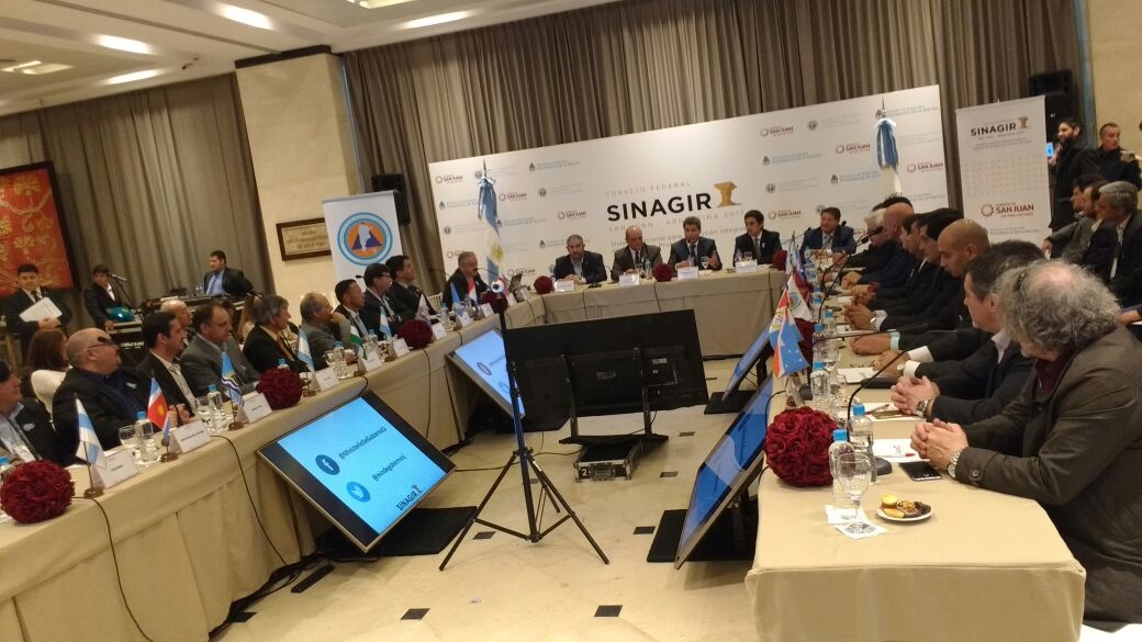El SINAGIR sesiona por primera vez en una provincia. Emilio Renda, secretario de Protección Civil de la Nación llegó en lugar de la ministra Patricia Bullrich. Autoridades provinciales y de todo el país se congregaron en San Juan para debatir y elaborar políticas públicas relacionadas a la gestión de riesgo y protección civil. La sesión arrancó este miércoles en el Salón Cruce de los Andes, se trata de la primera vez que el SINAGIR sesiona fuera de Buenos Aires. Asisten representantes de 20 provincias, entre ministros, secretarios, subsecretarios y directores relacionados a las áreas de seguridad y protección civil y acompaña el secretario de Protección Civil de la Nación, Emilio Renda, en lugar de la ministra de Seguridad, Patricha Bullrich que confirmó que no llegaría este jueves a la provincia. De la apertura del encuentro, participaron el gobernador Sergio Uñac y el ministro de Gobierno, Emilio Baistrocchi. Esta nueva legislación nacional crea dos consejos de asesoramiento nacional y regional en materia de gestión de riesgo. Por un lado, el Nacional, integrado por ministros y áreas nacionales relacionadas a Protección Civil y el Consejo Federal, compuesto por las Secretarías, Subsecretarías y Direcciones de todas las provincias. Algunas de las temáticas más importantes de esta edición del Consejo Federal SINAGIR son la regionalización, según los riesgos, para la obtención de un mejor respuesta y operatividad ante catástrofes; la aplicación de la Ley Nacional del Manejo del Fuego en relación a los cuerpos de bomberos de las provincias. El gobernador recordó el terremoto de 1944, como la tragedia más importante del país porque en ella fallecieron más de 10.000 sanjuaninos. «La provincia fue devastada, y el sistema precario de construcción de ese momento, que era de adobe, dio origen a uno de los más importantes del país. Acá es donde más caro sale construir en Argentina porque las normas implican poder asegurar la superación de innumerable cantidad de sismos», afirmó. Ante esto, destacó que a lo largo de la historia en el Estado hubo falta de planificación dilapidando recursos económicos y esfuerzos humanos. «Así nos ha ido, trabajamos el doble para conseguir la mitad», sostuvo al tiempo que le pidió a Emilio Baistrocchi y a Emilio Renda que se debe trabajar para adelantarse a estos fenómenos para salvar vidas y optimizar recursos destinados a la prevención ante la posibilidad latente de sismos. Fuente: Canal 13